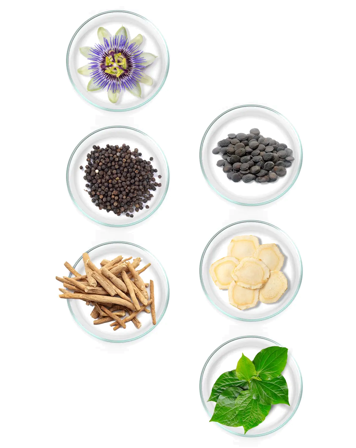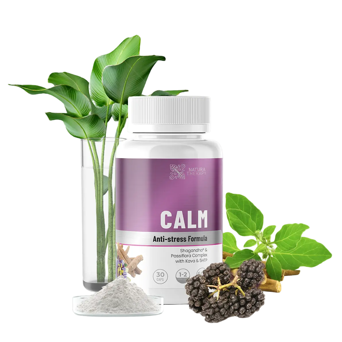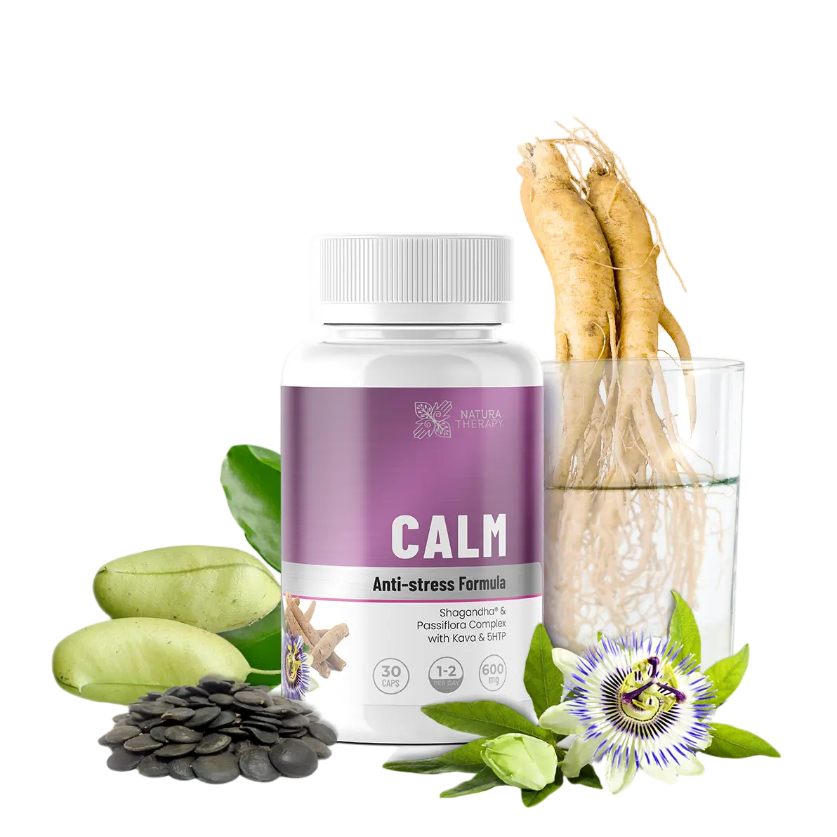 - Pasiflora - cvet pasiflore (plod marakuje) naučno dokazano povećava proizvodnju neurotransmitera GABA (gama-aminobutirinska kiselina), koji smiruje funkciju mozga, opušta telo i poboljšava kvalitet sna, pomažući u efikasnijem suočavanju sa anksioznošću, napetošću i depresivnim mislima.