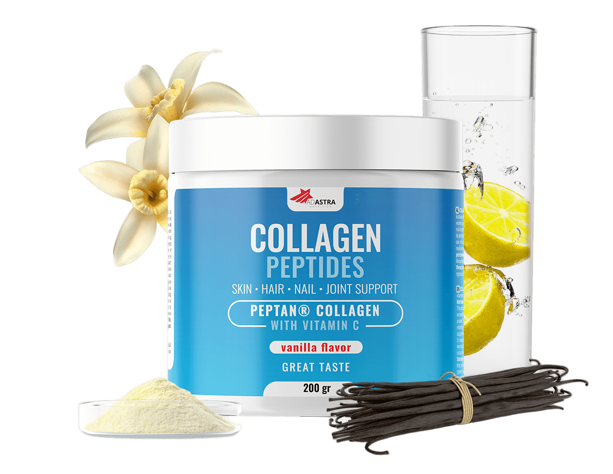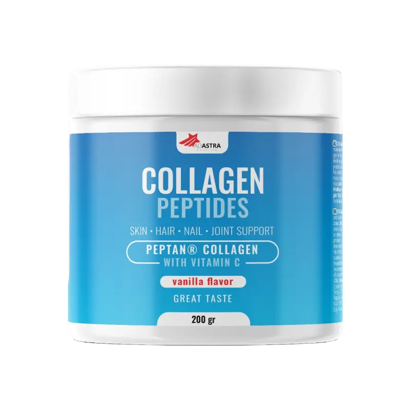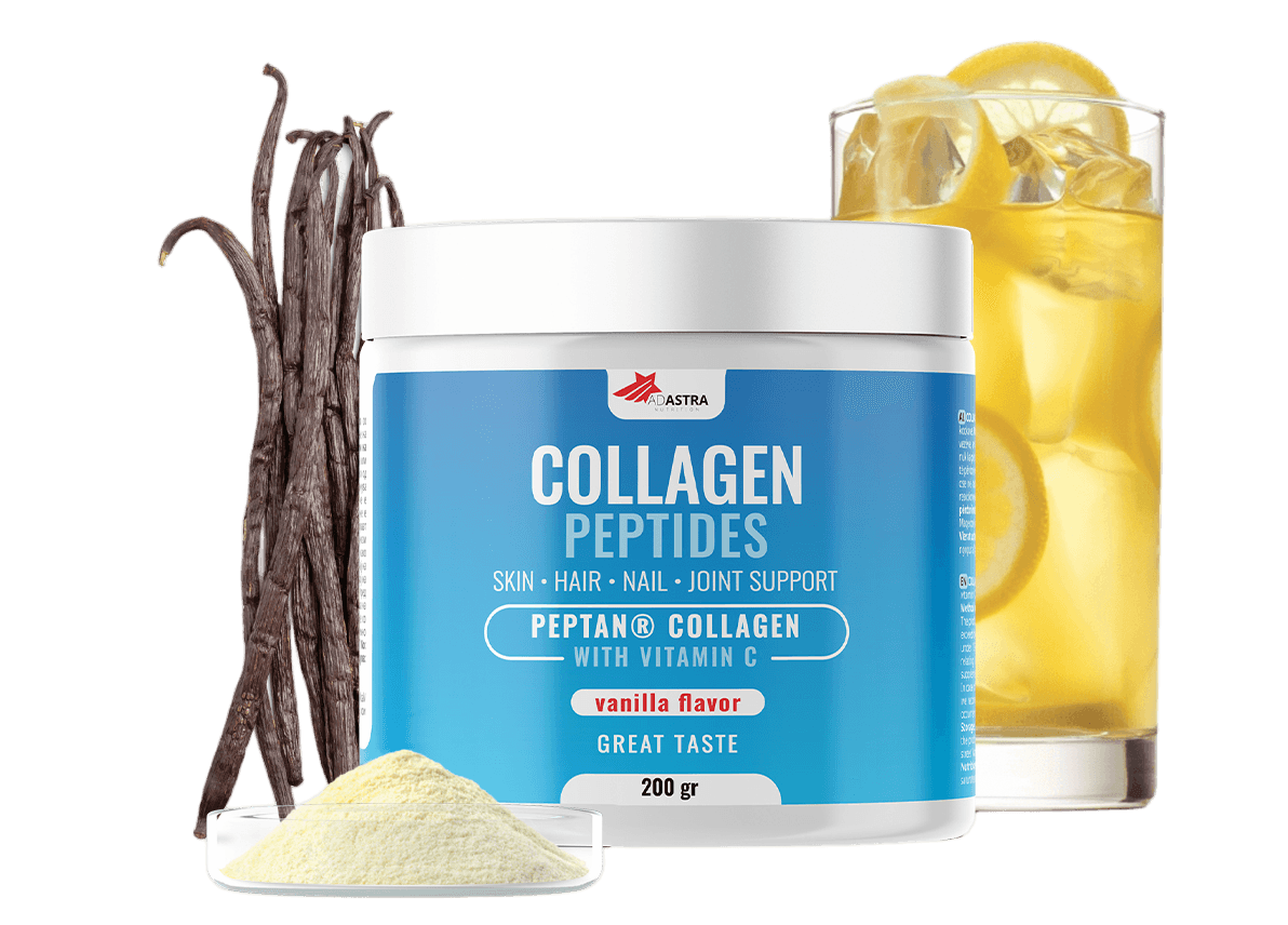 • Kolagen peptidi — sadrži hidrolizovani kolagen tip 1 goveđeg porekla. Procesom hidrolize kompleksna kolagenska struktura se razlaže na manje delove – peptide, koji brže i lakše prolaze kroz zid creva i ulaze u krvotok kako bi ostvarili svoje efekte.