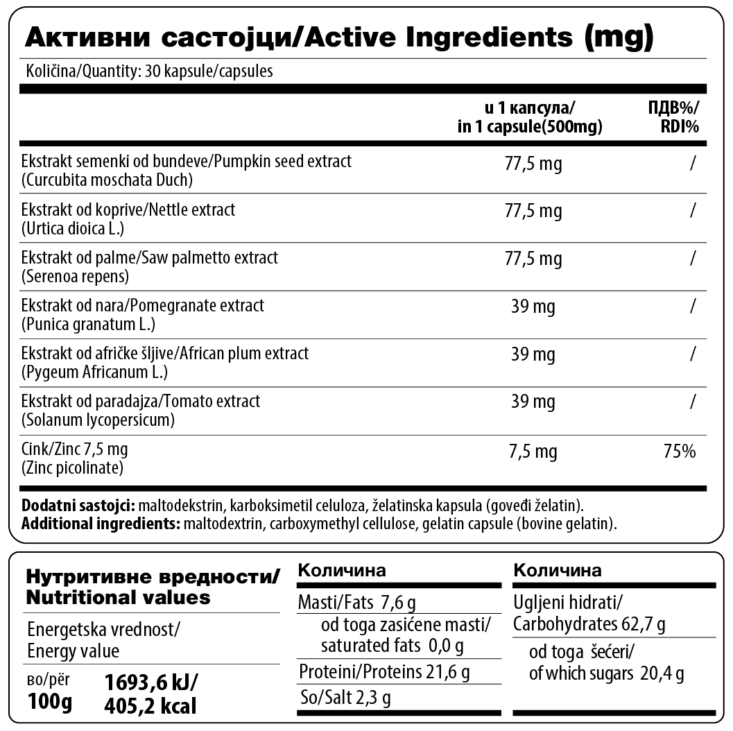 Sadrže cink i druge sastojke koji doprinose smanjenju učestalosti mokrenja i sprečavaju tegobe usled povećanja prostate.
